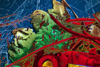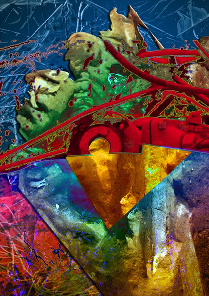 Unter Verwendung von Fotografie und Malerei aus eigener Hand entstanden diese computergenerierten Grafiken.