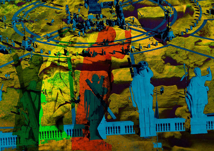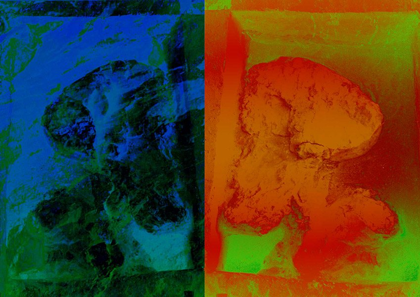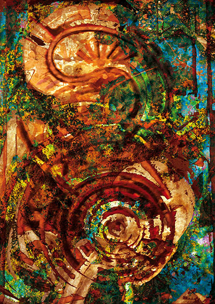 Unter Verwendung von Fotografie und Malerei aus eigener Hand entstanden diese computergenerierten Grafiken.