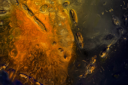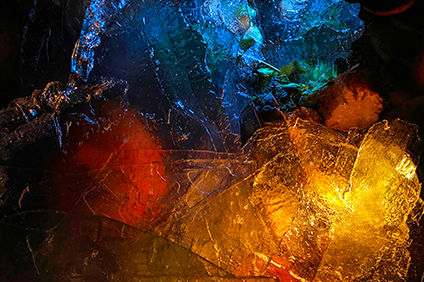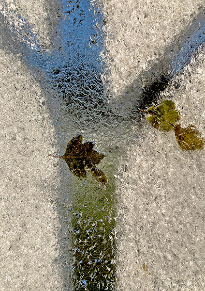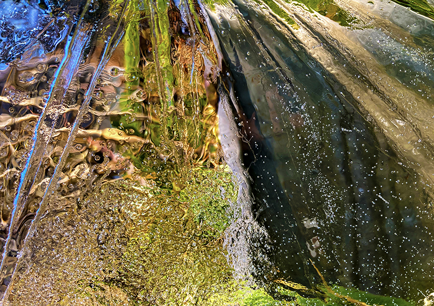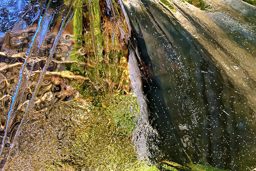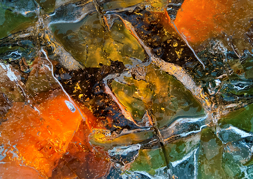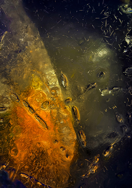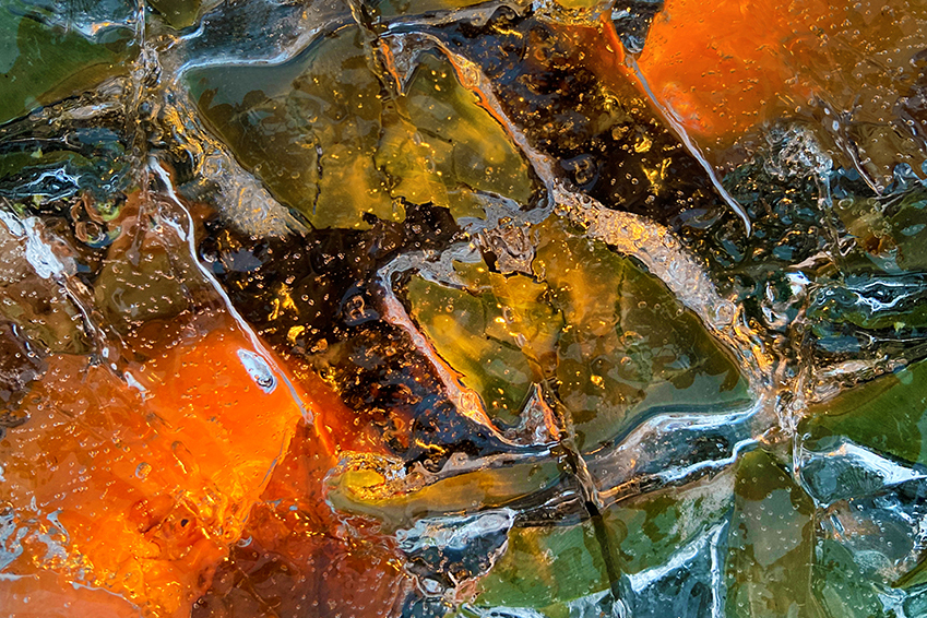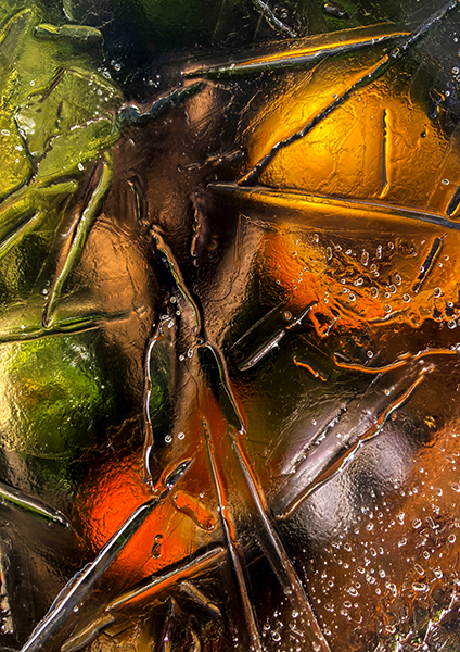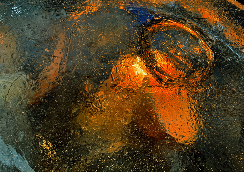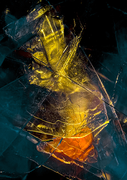 Unter dem Arbeitstitel „behind the bright side of the ice“ verbirgt sich eine jährlich im Winter wiederholende fotografische Serie welche sich mit Vergänglichkeit in Abhängigkeit von Licht (Natürliches &-oder Künstliches) und Temperatur beschäftigt. Mittels natürlichem Eis aus zBsp. Regentonnen oder ähnliches - in die Natur platziert begleite ich fotografisch den Augenblick als stoffliche Veränderungen. Im Ergebnis verschmelzen die tlw. Fraktalen Strukturen des Eises mit dem natürlichen Hintergrund zu einer Einheit mit z.T. bizarren Formen, unbekannten Welten und deren Farben wobei mir besonders der malerische Moment von Interesse ist.